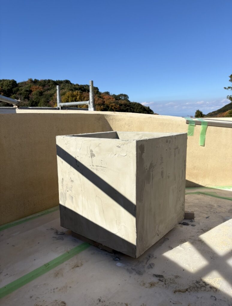 全て土壁で作っているのではなく、既製品の植木ポットに土を薄塗りする方法で作っています。